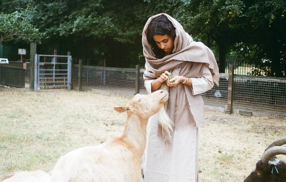 Her Comforts of Conquest series explores the colonial and ecological impacts of natural fibers like pashmina, sourced from Changthangi goats in Ladakh and handwoven by Kashmiri artisans. Utilizing 35mm photography as well as archival and material research, she traces the extractive history of one of the world’s most luxurious fabrics. Imperial British trade, she notes, made massive profits off pashmina by marginalizing the indigenous labor that produced it. Her current project explores the effects of colonisation and climate change on endangered craft and artisan communities in India.
